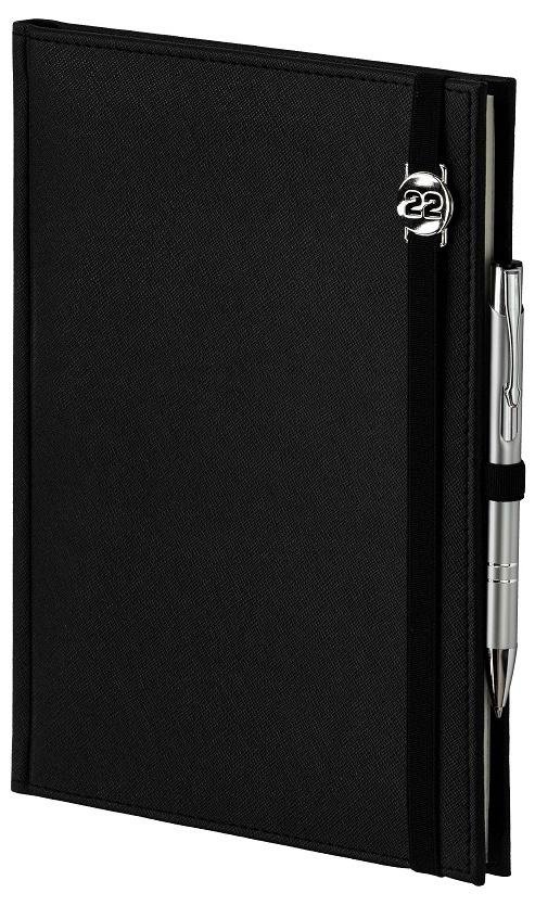 Kalendarz w oprawie Cross z gumką w kolorze oprawy. Na gumce ażurowa blaszka z datą. Blok kalendarza szyty nićmi. Kalendarz posiada: barwne mapy przedstawiające Polskę i kraje europejskie; rozbudowaną część informacyjną; przejrzysty układ graficzny kalendarium.Bez długopisu