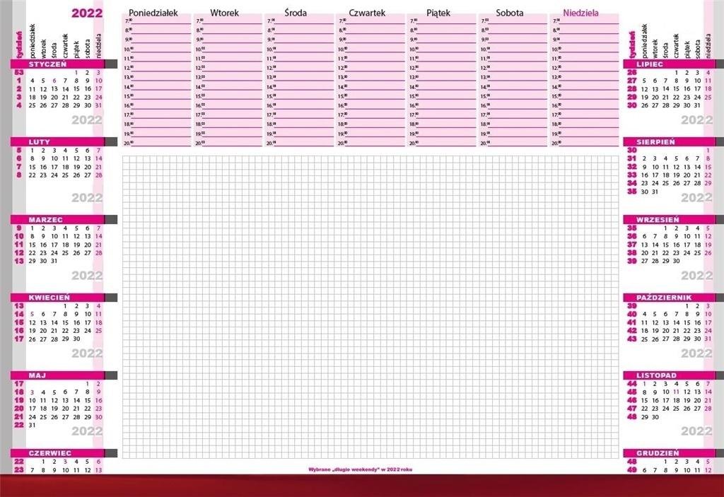 Praktyczny podkład na biurko z dużym obszarem do notowania zaprojektowany specjalnie do biura. Drukowany na białym papierze. Zawiera 52 karty (1 karta przeznaczona na każdy tydzień). Biuwar posiada uchylną listwę wykonaną z PCV w kolorze bordowym, na której można zamieścić nadruk reklamowy na...