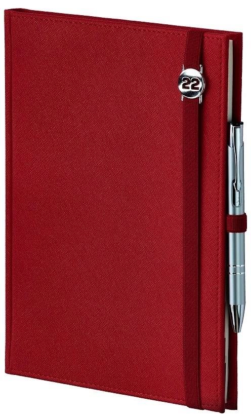 Kalendarz w oprawie Cross z gumką w kolorze oprawy. Na gumce ażurowa blaszka z datą. Blok kalendarza szyty nićmi. Kalendarz posiada: barwne mapy przedstawiające Polskę i kraje europejskie; rozbudowaną część informacyjną; przejrzysty układ graficzny kalendarium.Bez długopisu.