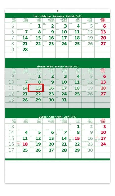 Kalendář nástěnný 2022 - Tříměsíční zelený (česky)