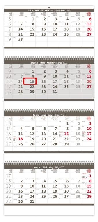 Kalendář nástěnný 2022 - Čtyřměsíční skládaný šedý (česky)