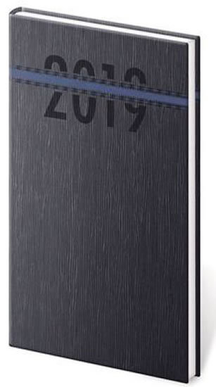 Diář 2019 - Stripes/týdenní/kapesní/černo/modrá (česky)