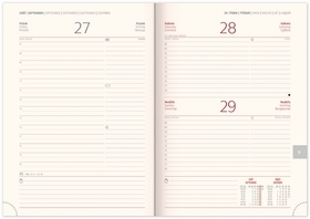 Denní diář Forest 2019 v krémové barvě. Diář má měkký povrch tvořený imitací dřeva, který je příjemný na dotek a snadno se do něj razí firemní logo.