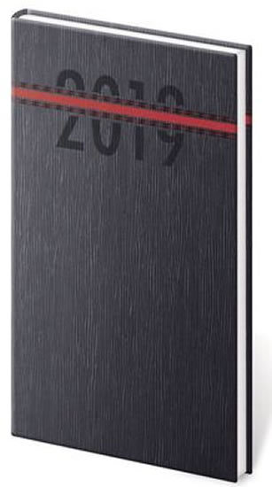 Diář 2019 - Stripes/týdenní/kapesní/černo/červená (česky)