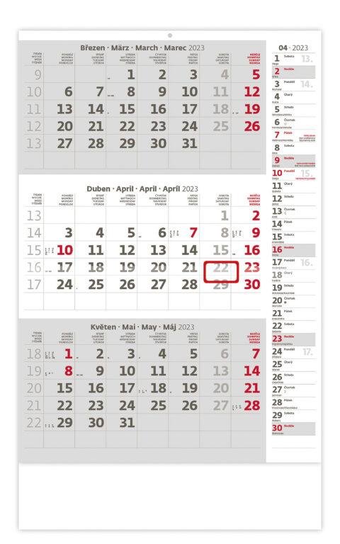 Kalendář nástěnný 2023 - Tříměsíční šedý s poznámkami (česky)