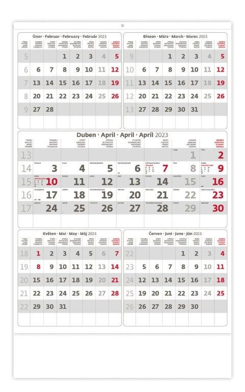 Kalendář nástěnný 2023 - Pětiměsíční/šedý (česky)