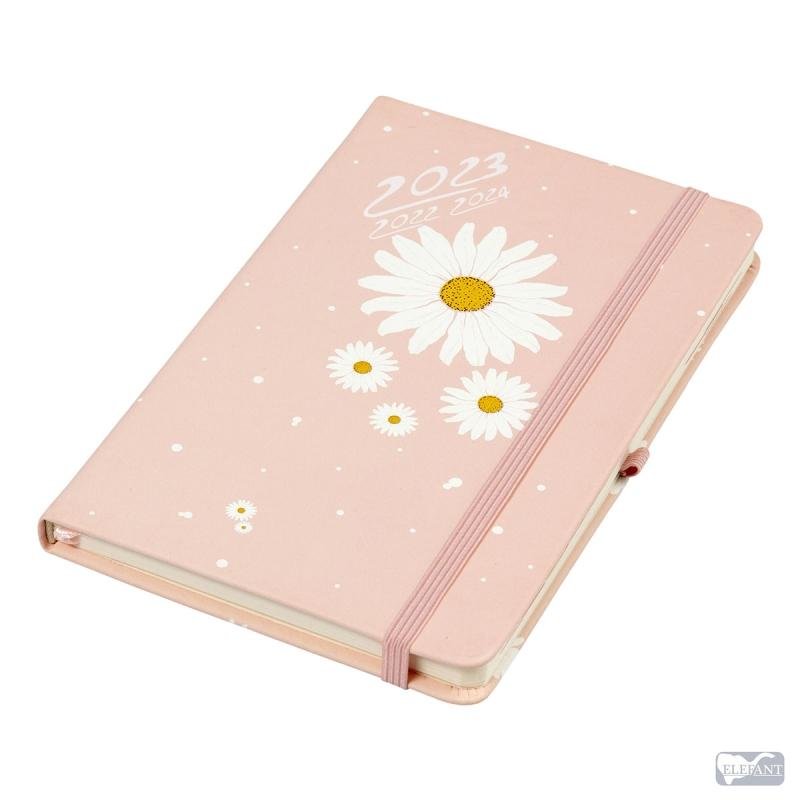Kalendarz 2023 A5 tyg. Hip hop stokrotka ELEFANTFormat A5 - tygodniowy, 18 miesięcy + noteswymiar: 200x130 mmpapier: delikatne chamois 80 g/m2ilość stron: 194+ zaokrąglone narożniki opraw i stron+ gumka spinająca kalendarz+ elastyczny uchwyt na długopis+ tasiemka w kolorze okładki+ koperta na...