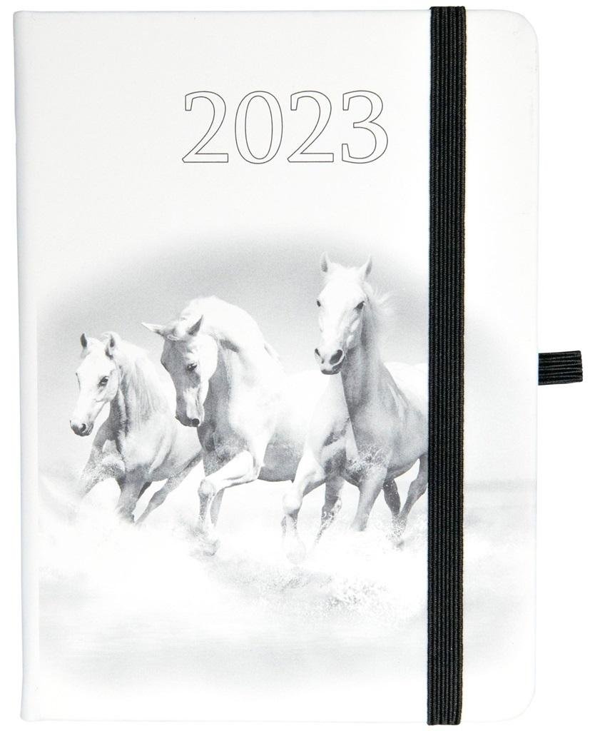 Kalendarz 2023 B6 tyg. Hip hop konie ELEFANTFormat A5 - tygodniowywymiar: 210x145 mmpapier: delikatne chamois 80 g/m2ilość stron: 166+ zaokrąglone narożniki opraw i stron+ gumka spinająca kalendarz+ elastyczny uchwyt na długopis+ dwie tasiemki w kolorze okładki+ koperta na odwrocie okładki+...