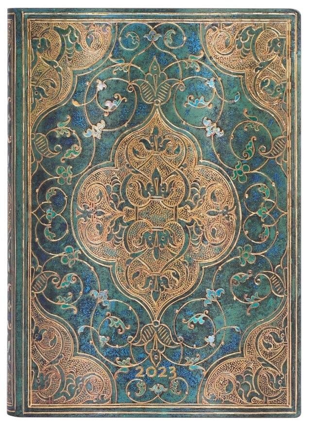 Kalendarz 2023 ekskluzywnej marki Paperblanks. Seria flexi - elastyczna oprawa i grzbiet. Układ dzienny, każdy dzień rozplanowany jest na osobnej stronie (włącznie z sobota i niedzielą). Kalendarium w języku angielskim. W środku miejsce na notatki, roczny planer, oznaczone wybrane święta...