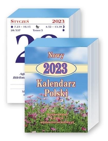 uchwyt do zawieszenia;awers: kalendarium jednodniowe, do pięciu imion solenizantów, miejsce na notatki, numeracja dni i tygodni roku, godziny wschodu i zachodu Słońca oraz Księżyca, fazy Księżyca, znak zodiaku, aforyzm lub przysłowie;rewers: informacje o skandalistach, znanych rodach, książkach...