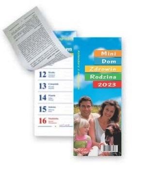 Kalendarz z magnesem można zawiesić na lodówce!format 7,5 x 18,5 cm, 112 stron;okładka kredowana, druk środka dwukolorowy, dwustronny;awers: kalendarium tygodniowe, miejsce na notatki, numeracjatygodni i dni roku, fazy Księżyca, aforyzm, znaki zodiaku, w niedzielegodziny wschodu i zachodu...