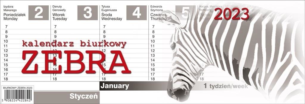 Uniwersalny kalendarz biurkowy (może stać lub leżeć). Kalendarium tygodniowe z czystą stroną na notatki. Co tydzień kalendarium miesięcznez zaznaczonym bieżącym tygodniem.format 33 x 11,2 cmjednostronnie drukowanypapier offsetowy 90 gkalendarium z imieninamiw układzie tygodniowympodstawka z tektury