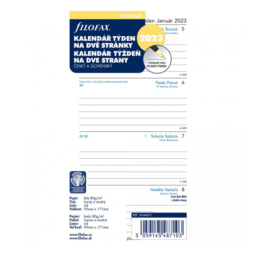 Kalendár osobný 2023, týždeň/ str, linky ČJ+SJ (česky)