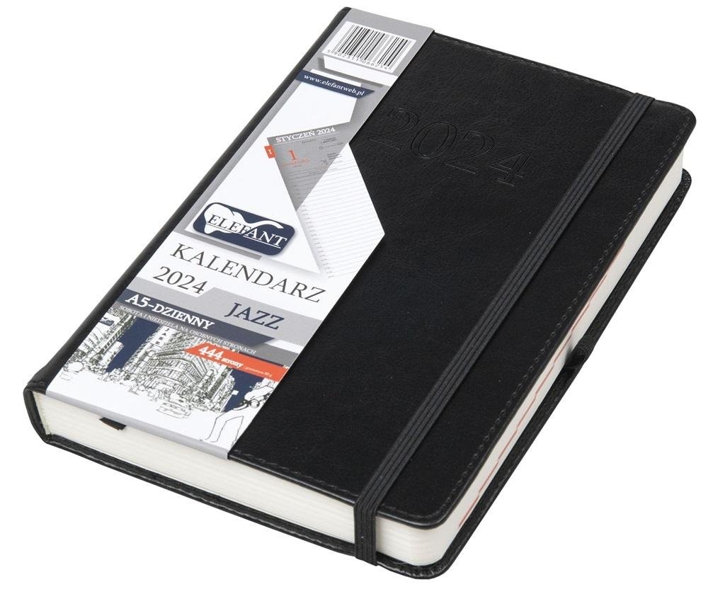 - wewnątrz: plan roku i rozkład roku 2024, specjalny planer do zarządzania zadaniami w czasie(np. planowanie urlopów, wakacji, wizyt klientów, zabiegów itp.) z podziałem na każdy miesiąc osobno, terminy ferii zimowych, święta oficjalne i zwyczajowe, podróże, informacje dla podróżnych, protokół powypadkowy w przypadku stłuczki, notes, skorowidz teleadresowy, kalendarium dodatkowe na 2023-2024-2025 rok