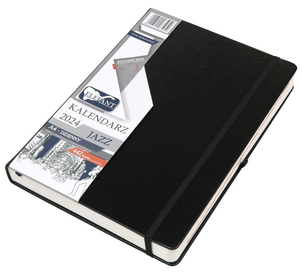 Jazz: kalendarz książkowy 2024format: A4oprawa: twarda wykonana z wysokiej jakości materiału imitującego skóręzamykany na gumkę w kolorze czarnymgumka na długopis w kolorze czarnymzaokrąglone narożniki opraw i strondwie tasiemki w kolorze czarnympierwsze strony wewnątrz wraz z kopertą na tylnej...