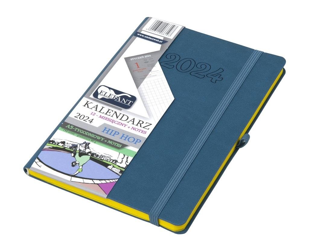 Hip Hop: kalendarz książkowy 2024format: A5oprawa: miękka wykonana z wysokiej jakości materiału skóropodobnegozamykany na gumkę w kolorze czerwonymgumka na długopis w kolorze czerwonymzaokrąglone narożniki opraw i stronbrzegi kalendarza Hip Hop są w kolorze granatowymtasiemka w kolorze...