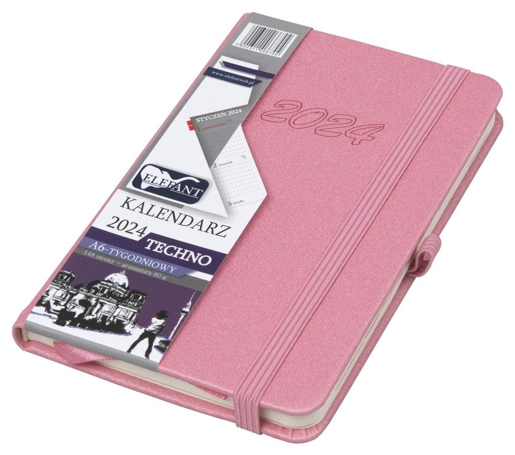 Kalendarz 2024 A6 tygodniowy Techno różowy (polsky)