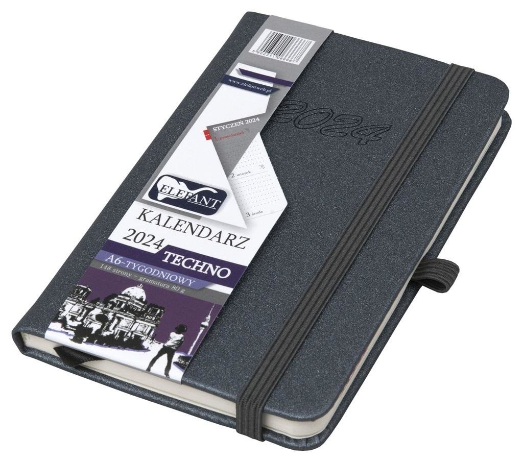 Kalendarz 2024 A6 tygodniowy Techno grafitowy (polsky)