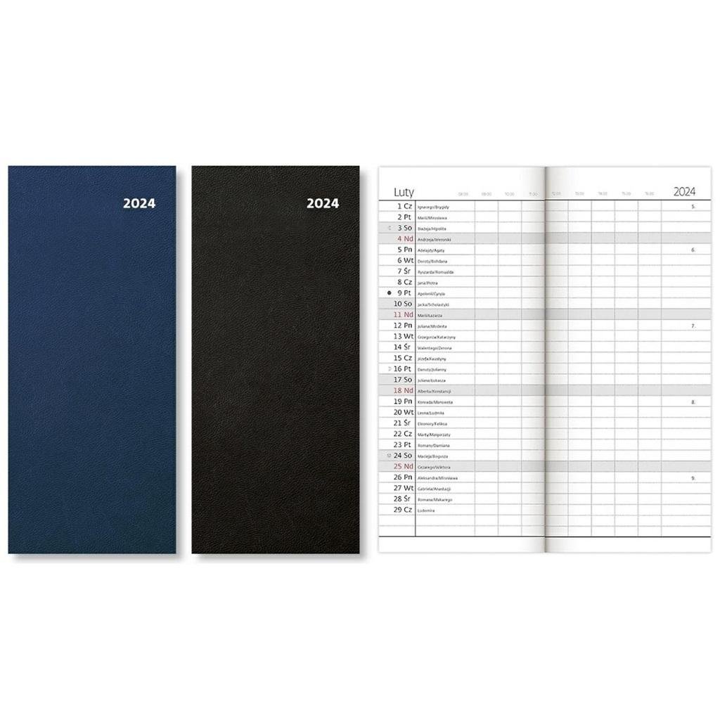 Kalendarz kieszonkowy na 2024 rok z miesięcznym kalendarium, z miejscem na notatki przy każdym dniu. Po otwarciu mamy widok na cały miesiąc - taki układ idealnie sprawdzi się do zapisywania godzin pracy, spotkań, wizyt - niezastąpiony jako podręczny grafik. Wymiar 17,8 x 7,7 cm.