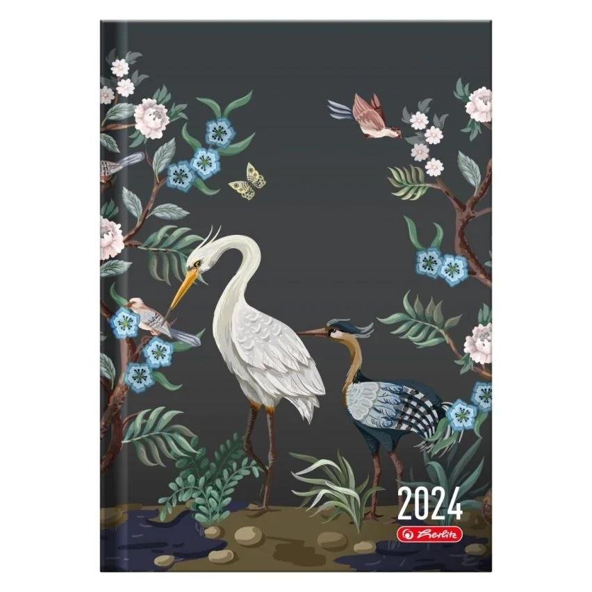 Kalendarz dzienny A5, motyw czapla 2024:kolekcja japońska,okładka kartonowa z pianką, lakierowana w celu lepszego zabezpieczenia produktu,cudowny motyw z czaplą dodaje uroku i inspiracji,idealny dla ceniących dobra organizację,praktyczny planer dzienny oraz dużo miejsca na notatki,kalendarium w 4...