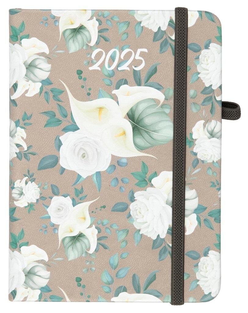 Kalendarz 2025 A6 tyg. Flamenco białe kwiaty (polsky)