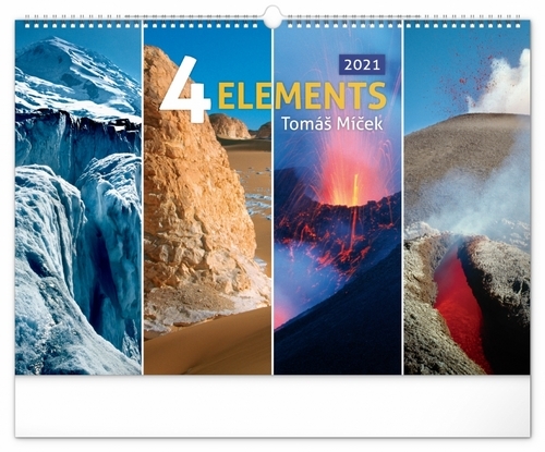 Oheň, vzduch, voda a země, živelné síly, které ožívají na fotografiích od Tomáše Míčka. V šířkovém formátu můžete obdivovat jak soptící vulkány, tak zamrzlé ledovce nebo vyprahlé pouště. Kalendář obsahuje univerzální kalendárium se zvýrazněnými nedělemi na černém pozadí a popisky ve čtyřech jazycích.