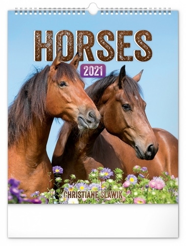 Missourský klusák v poklusu, zasněný lipicán nebo fellský pony s hřívou skoro až na zem, tyto a další záběry ze života koní nafotila známá německá fotografka Christiane Slawik. Fotografie doplňuje univerzální kalendárium se zvýrazněnými nedělemi na černém pozadí a popisky ve čtyřech jazycích.