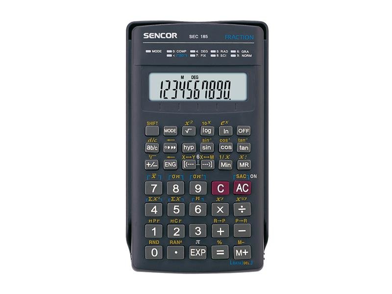 Kalkulačka SENCOR SEC 185 Školní kalkulačka s pevným plastovým krytem.Parametry produktu :- 240 matematických funkcí- displej jednořádkový 10 míst- Multi Replay funkce, výpočet zlomků- šedesátkové a desítkové výpočty- statistické výpočty, variace, kombinace- hyperbolické a...