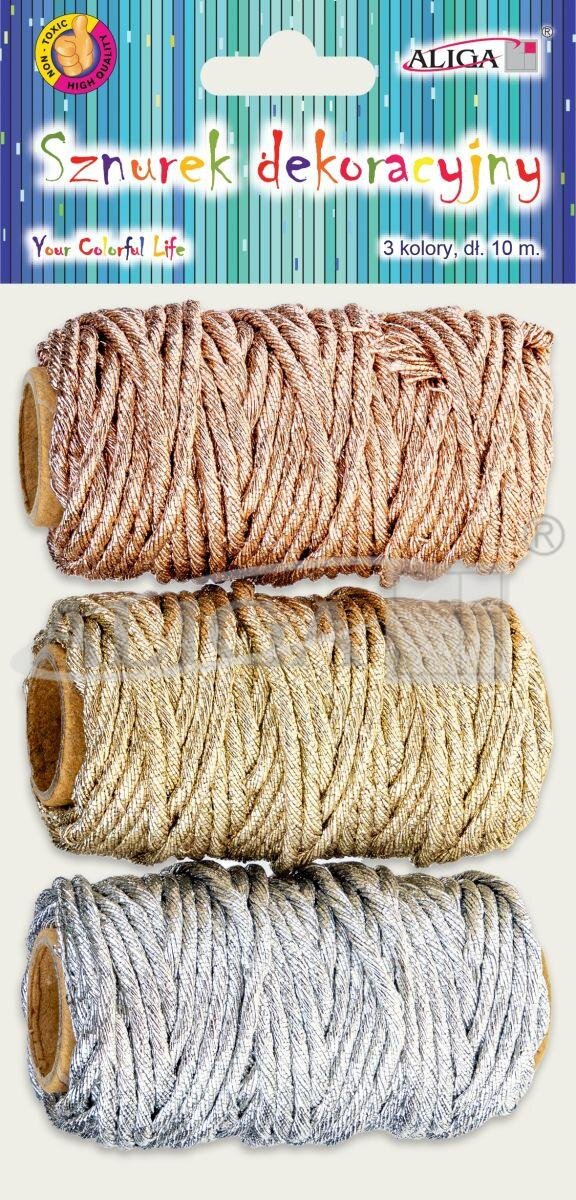 Sznurek dekoracyjny 2mm x 10m 3 kolory\n SZ-7383