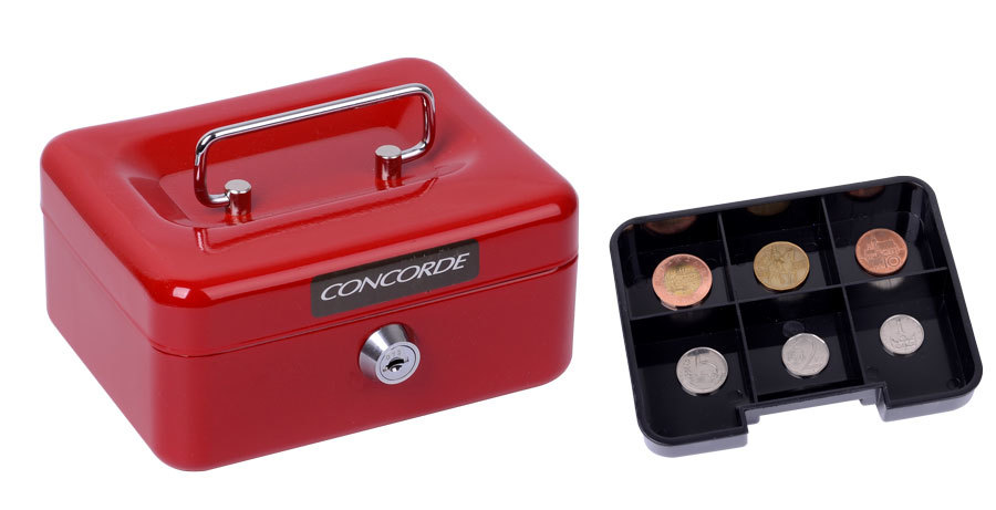 Kovová pokladna vyrobená z bezešvého ocelového plechu , přihrádka na mince, uzamykatelná, přenosná. 150 x 120 x 71mm. prečítať celé
