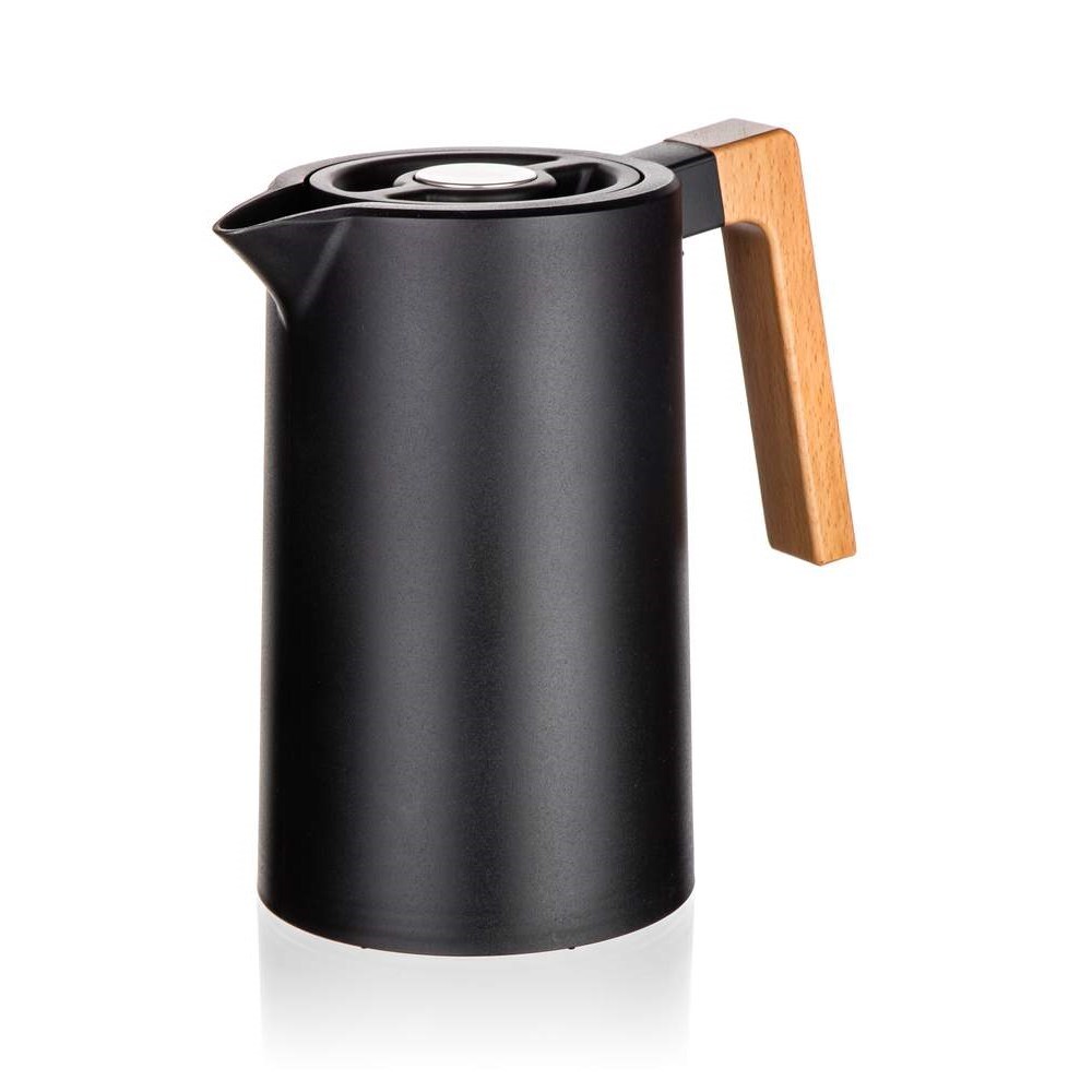 Termokonvice JOYCE o objemu 1 l, má vakuově izolované tělo. Vnitřní část je vyrobena z nerezu 304, vnější část z nerezu 201 a plášť je z plastu (PP). Termokonvice je vhodná pro teplé i studené nápoje. Ve víčku termokonvice je kulatá pojistka - termo-bezpečnostní uzávěr, díky kterému je možné nalévání nápoje bez odšroubování víčka, stačí jednoduše zatlačit pojistku. Po opakovaném zatlačení pojistky je konvice uzavřená.
