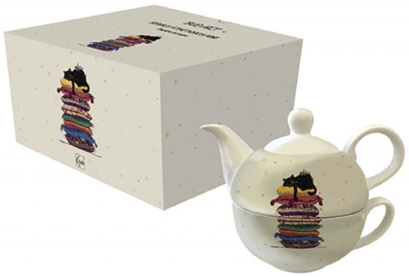 Porcelánová konvice 450 ml a hrnek 350 ml na čaj BUG ART KIUB - Kočka na polštářích