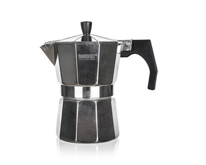 Kávovar BRIA, 3 šálky je tradiční kávovar pro domácí přípravu chutné silné kávy. Je vhodný pro použití na plynových, elektrických a sklokeramických deskách. Hliníkové tělo kávovaru již po několika šálcích získá patinu, která je pro správnou chuť kávy nepostradatelná. Kávovar je opatřen bezpečnostním ventilem. Využitelný objem 150 ml. Kávovar není vhodný pro mytí v myčce.