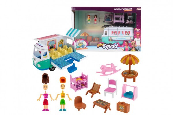 Obytné auto s panenkami a příslušenstvím. Pojedete dnes na výlet, zůstanete na na lehátkách pod slunečníkem na plaži nebo uděláte BBQ? Výběr je pouze na vás. 15 ks příslušenství Vhodné od 4 let. prečítať celé