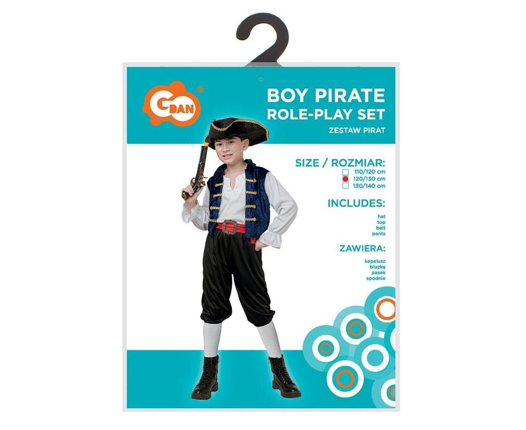 STRÓJ PIRATW skład stroju wchodzą: kapelusz, bluzka, pasek, spodnieRozmiar: 120/130 cmKolor: biały, czarny, granatowyMateriał: 100% poliesterProducent: Godan prečítať celé