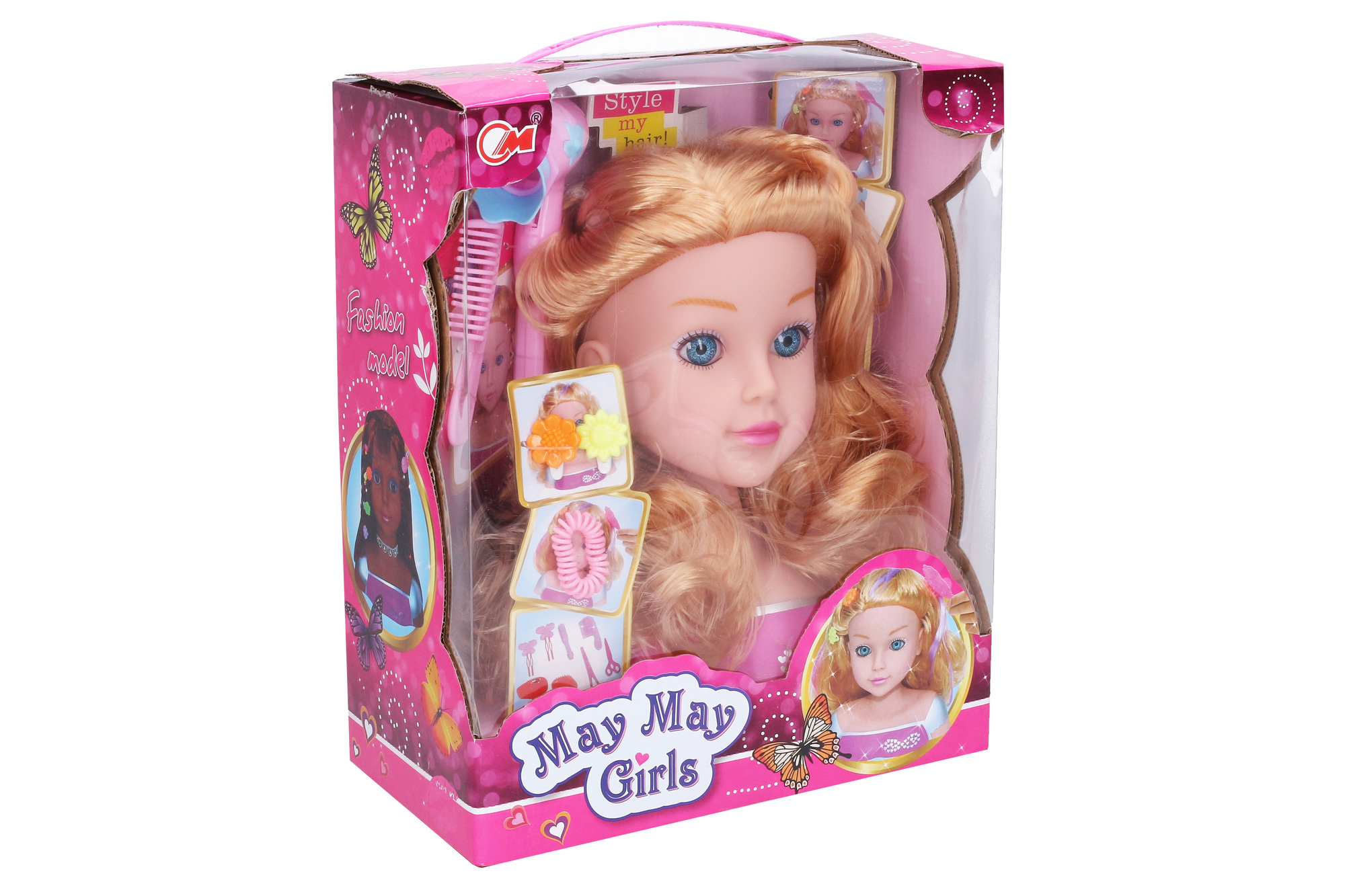 Česací hlava set. Velikost 22 cm. Obsah - hlava, fén, kulma, hřeben, 2 sponky, gumička. prečítať celé