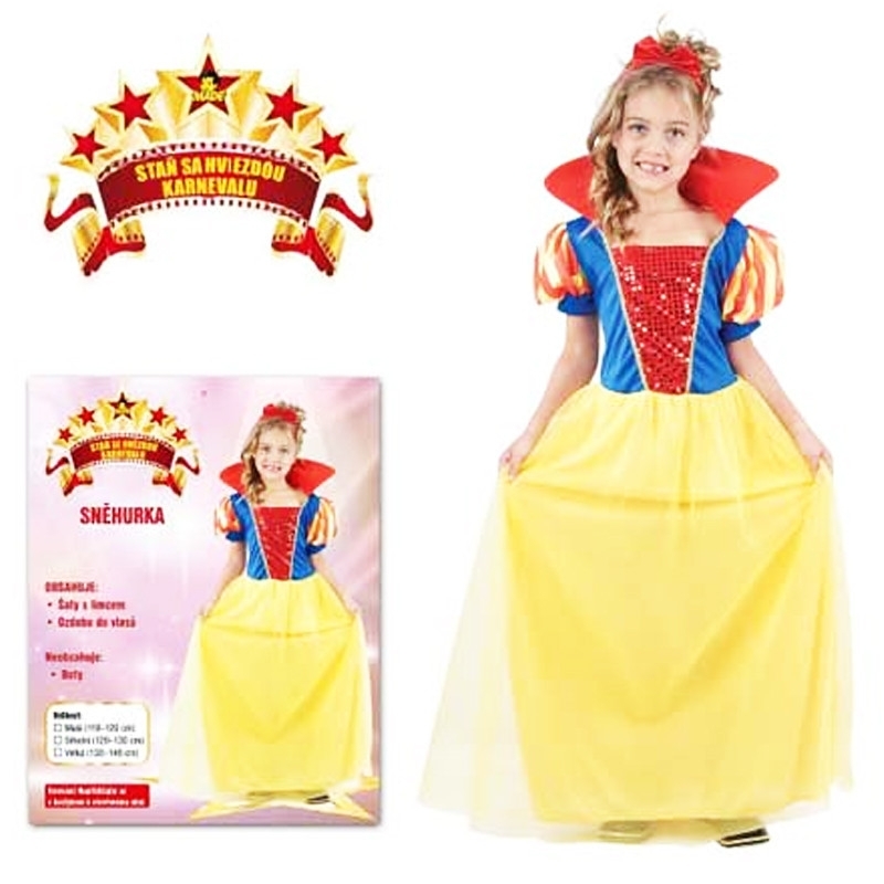 Karnevalový kostým Sněhurka, pro děti o výšce 110 - 120 cm.V balení naleznete: šaty s límcem a ozdobu do vlasů. cena je za balení. Vhodné pro děti 4+. prečítať celé