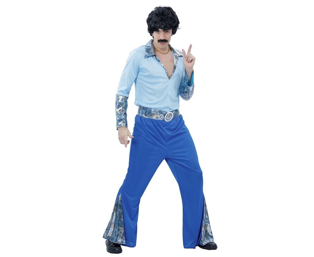 STRÓJ DISCO LATA 70'W skład stroju wchodzą: bluzka, spodnie, pasekKolor: niebieskiRozmiar: 52Materiał: 100% poliesterProducent: Godan prečítať celé