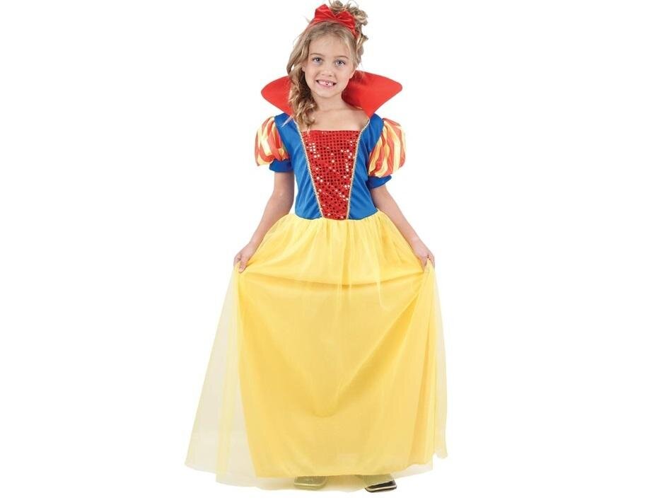 Strój Królewny Śnieżki: sukienka z dołączonym kołnierzykiem, opaska z kokardąrozmiar L: 130-140 cm prečítať celé