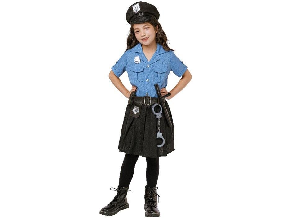 Strój Policjantka: Kapelusz, koszula, spódnica, pas, pałka, Walkie-Talkie, kajdankirozmiar S: 110-120 cm prečítať celé