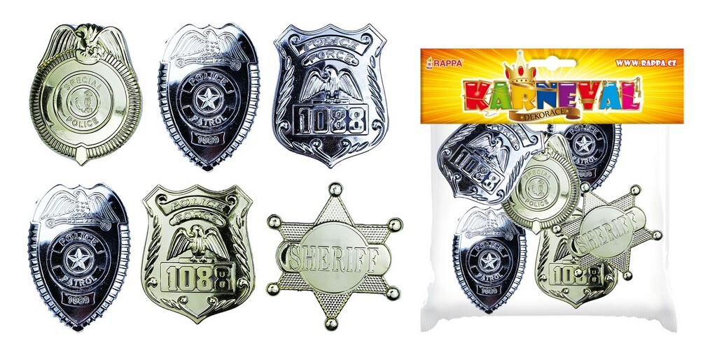 Sada policejních odznaků s 6 ks v sáčku. Perfektní doplněk k policejnímu kostýmu! prečítať celé