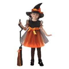 Przebranie dla dziewczynki w kolorach pomarańczowym oraz czarnym. Strój składa się z sukienki z krótkimi rękawami, z tiulowym wykończeniem oraz kapelusza czarownicy. Posiada ozdobne kokardy.Strój dla dziecka na bal przebierańców, halloween, zabawy tematyczne, zabawy w przedszkolu i... prečítať celé