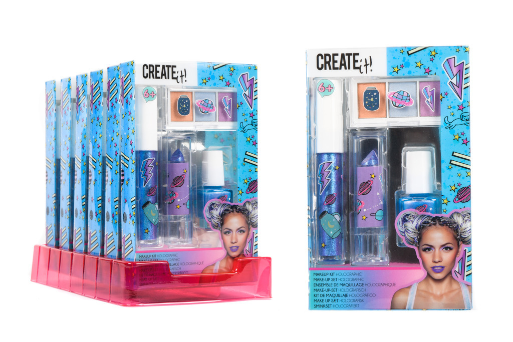 Make up sada holografická obsahuje oční stíny, lesk na rty, rtěnku a lak na nehty – vše v holografických barvách. prečítať celé