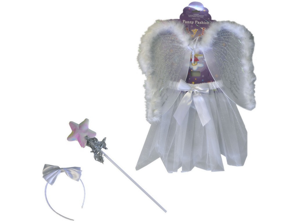 Karnevalový kostým - Anděl.Kostým je vhodný pro děti ve věku 3-6 let.Průhledná sukýnka má délku: cca 20 cm.Obsahuje:- sukýnku- křídla- hůlku- čelenku. prečítať celé
