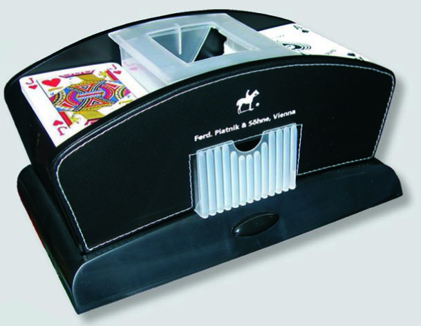 Jednoducho vložíte až dva balíčky kariet do miešačky, ktorá ich následne dokonale a náhodne premieša. Vďaka tomu sú karty pripravené pre férovú hru, ktorú si vychutnáte naplno. Miešačka beží na 4 kusy AA 1,5 V batérií (batérie nie sú súčasťou balenia), čo zabezpečuje flexibilné a pohodlné použitie aj mimo dosahu elektrickej zásuvky.