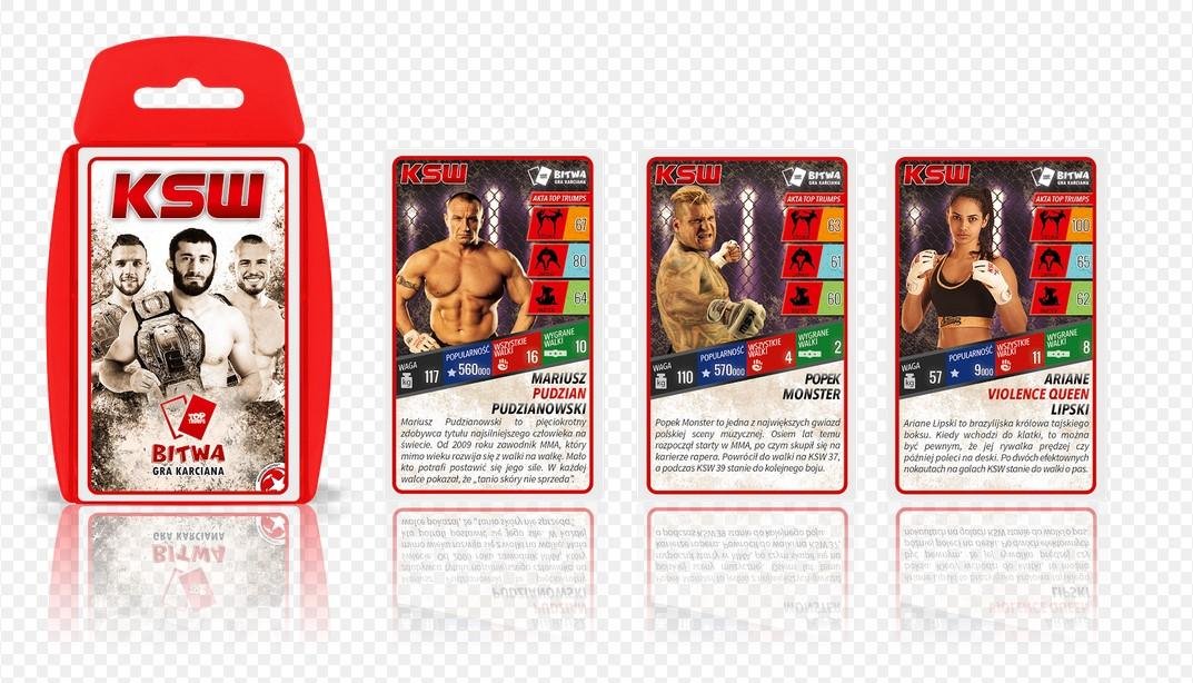 Gra karciana Top Trumps Bitwa KSW przeniesie Cię na ring najpopularniejszej w Polsce organizacji MMA! Jak dobrze znasz zawodników KSW i ich umiejętności? Czy Mamed może pokonać Pudziana? Który z graczy jest najmocniejszy w parterze? Nie czekaj, walcz na cechy, zbierz wszystkie karty i wygraj!