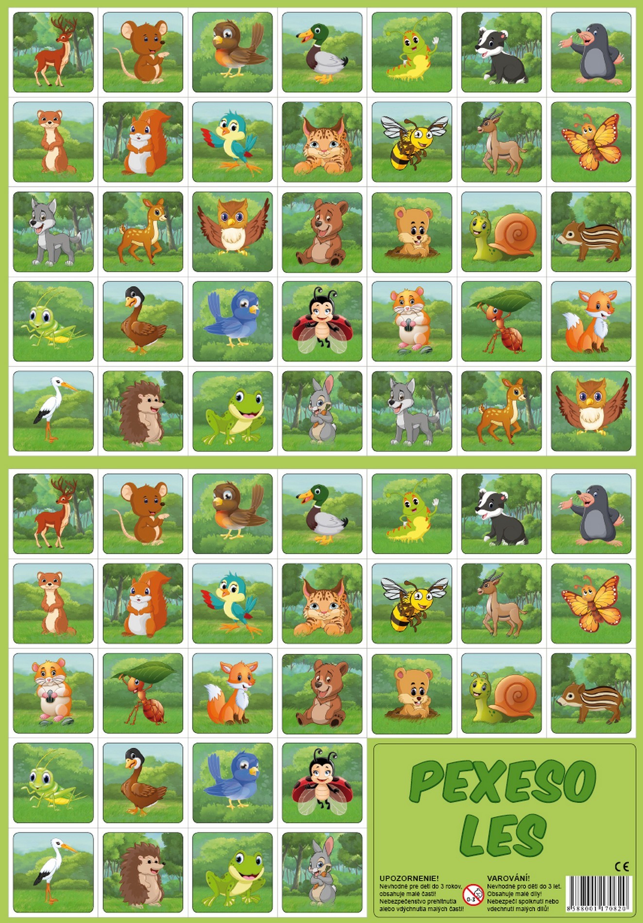 Pexeso Les papierové kreslené spoločenská hra 32 obrázkových dvojíc 24,5x34,5cm