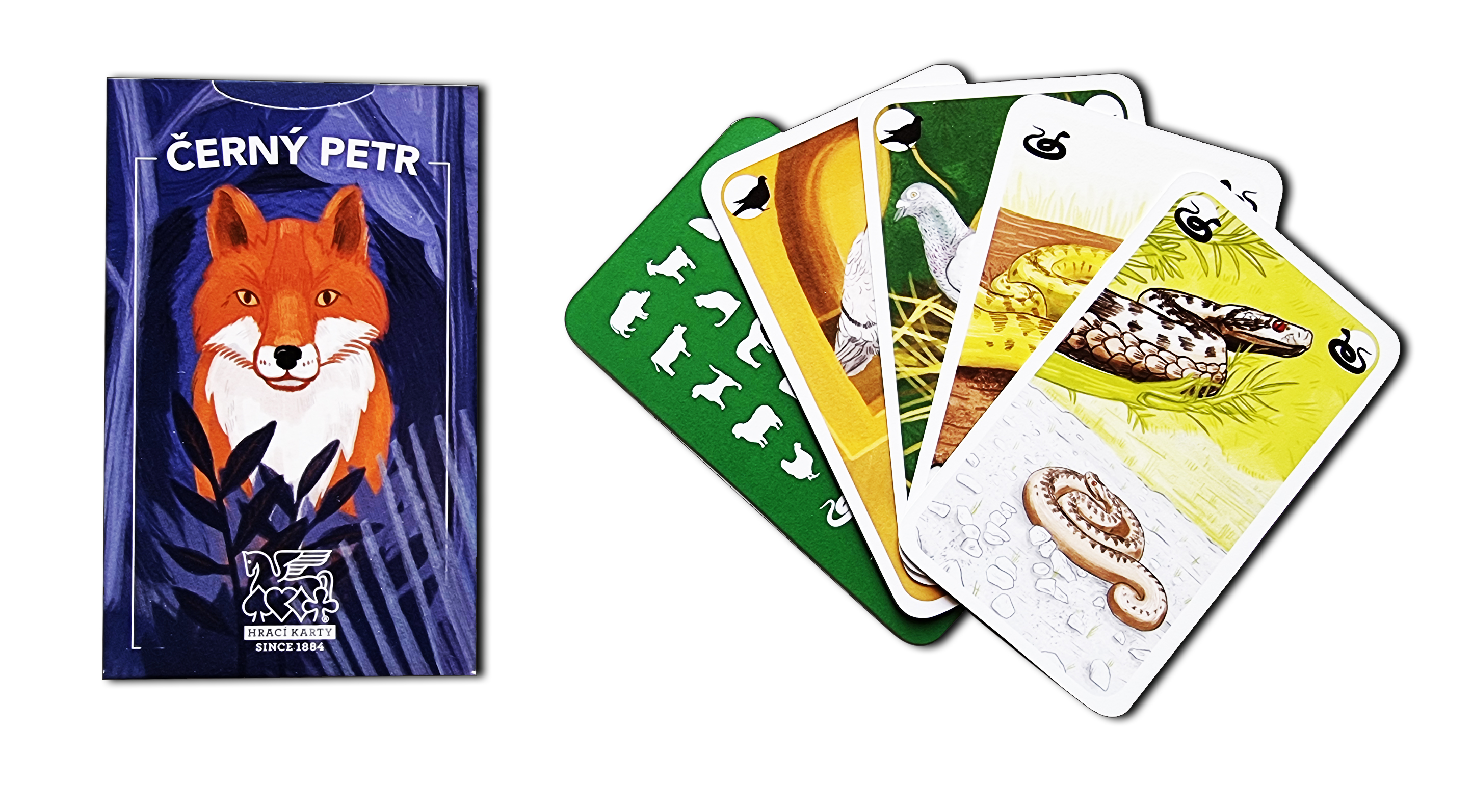 …Černý Petr se zvířátky ze statku i lesa. Dvojici tvoří jak dospělí tak mláďátka. Autorkou obrázků je Tereza Šajnerová. No.2103, revers káro, krabička papír počet 33 listů formát karet 62/104 mm papír Casino Classic 310 g/m2 prečítať celé