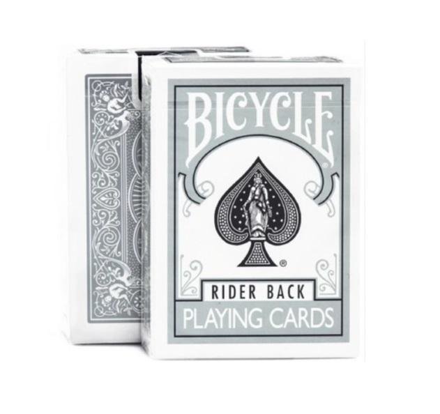 Przepiękna, unikalna talia Bicycle Silver Rider Back.Oprócz standardowej talii kart w zestawie znajdują się 3 dodatkowe kart gaff - blank face, as kier z czarnym asem centralnym, as trefl z czerwonym treflem w środku.Talia z metalicznym tuszem, wykonana metodą Air Cushion Finish.