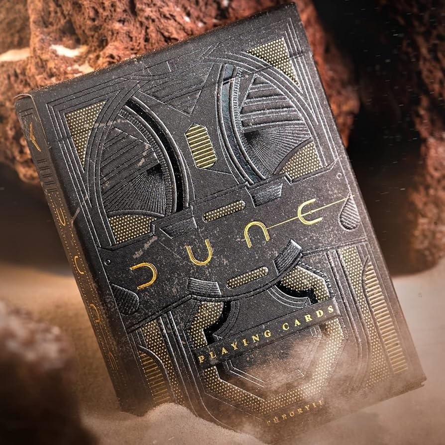 Standardowa talia kart do gry. NIEZRÓWNANA JAKOŚĆ DRUKUMade In America Theory1111 produkuje najlepsze karty do gry na świecie. Same karty produkowane są w USA. Świat Dune w dłoni opakowanie zewnętrzne po prostu zachwyca. Przód pudełka zaprojektowano w formie filtrfraka, zniszczonego przez...